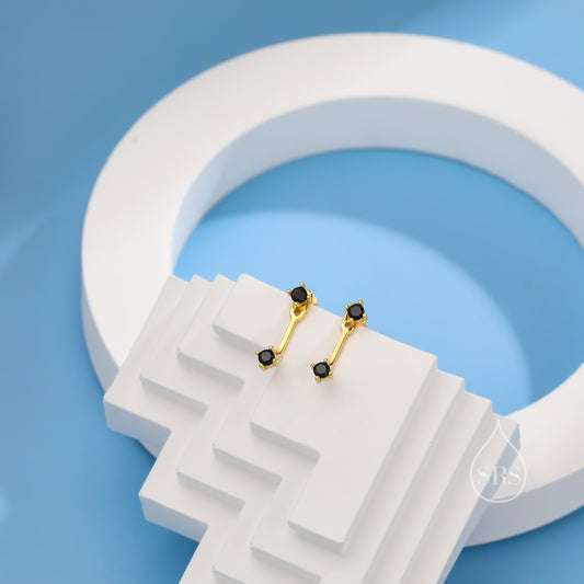 Double Black CZ Ear Jacket in Sterling Silver, Silver or Gold, Front and Back Earrings, Two Part Earrings