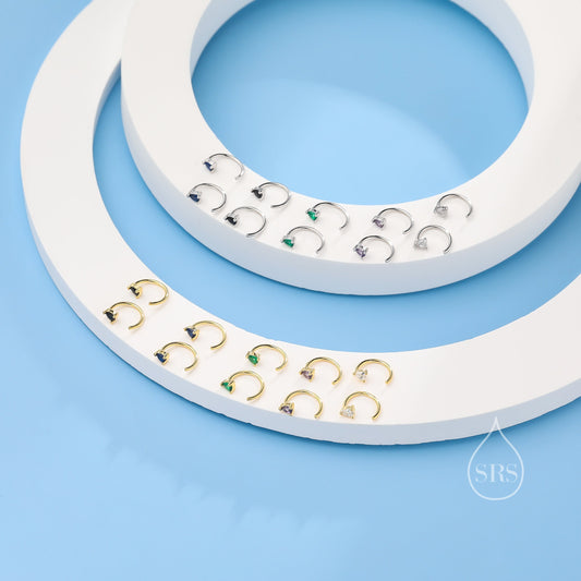 Extra Tiny CZ Droplet Huggie Hoop Earrings in Sterling Silver, Available in 5 Colours, Tiny Pear Cut CZ Open Hoops, Pull Through Threaders