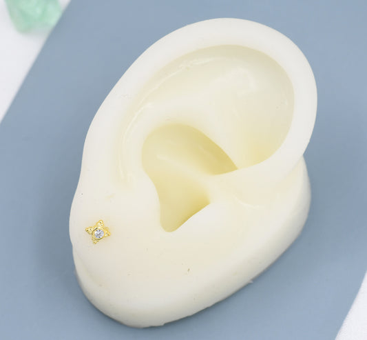 Extra Tiny Dotted Cluster and CZ Stud Earrings in Sterling Silver, Gold or Silver, Four Cluster Earrings, Stacking Earrings, Vintage Style