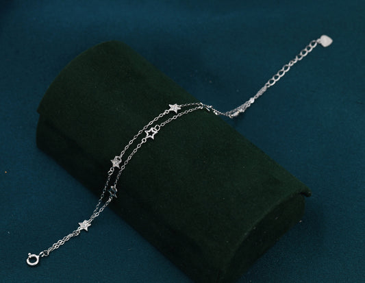 Double Layer Star Bracelet in Sterling Silver, Floating Star Bracelet, Silver Star Bracelet, Tiny Star Bracelet