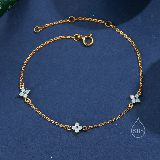 Delicate Opal Bracelet in Sterling Silver, Available in Blue Opal or White Opal, Silver or Gold, Silver Opal Bracelet