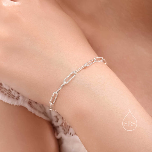 Sterling Silver Hammered Paperclip Bracelet, Paperclip Chain Bracelet, Sparkly Chain Bracelet, Hammered Chain Bracelet