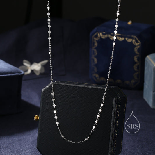 Minimalist Sparkle Disk Chain Choker Necklace in Sterling Silver, Available in Two Lengths, Silver or Gold, Skinny Necklace