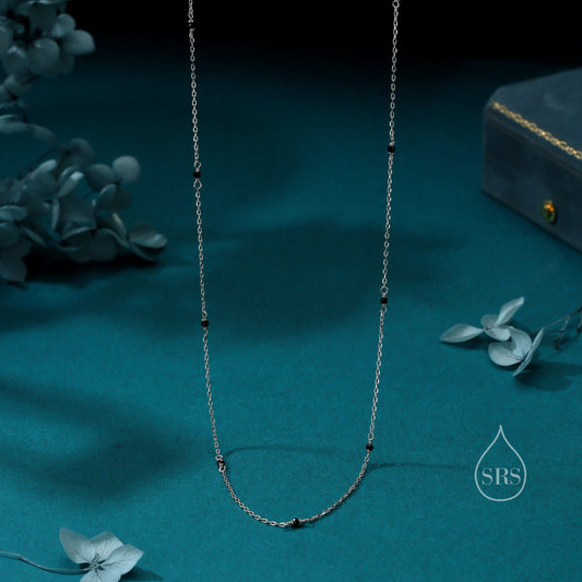 2mm Black Spinel Beaded Satellite Chain Necklace in Sterling Silver, Silver or Gold, Choker Necklace, Minimalist Geometric Style
