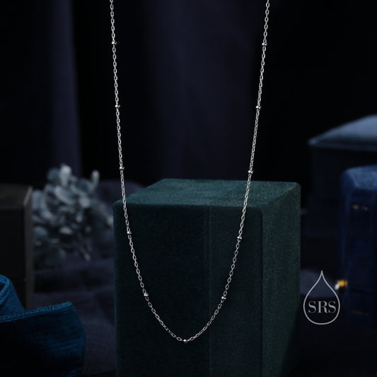 Minimalist Dainty Bead Motif Necklace in Sterling Silver, Various Lengths, Silver or Gold or Rose Gold, Satellite Chain Bead Choker Necklace