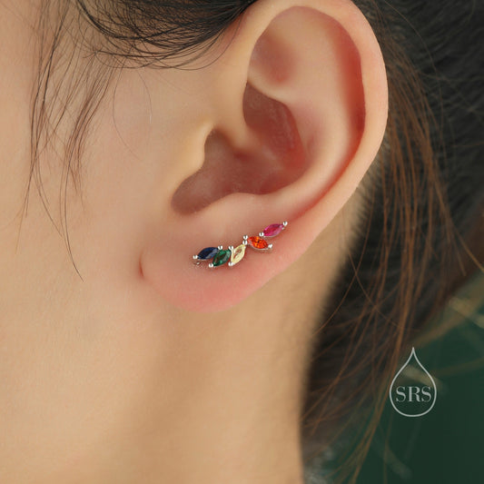 Rainbow Marquise CZ Cluster Crawler Earrings in Sterling Silver, Silver or Gold, Marquise CZ Cluster Crawler, Cluster Earrings