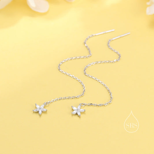 CZ Flower Threader Earrings in Sterling Silver, Silver or Gold, Forget-me-not Floral Ear Threaders, Sparkly CZ Threaders