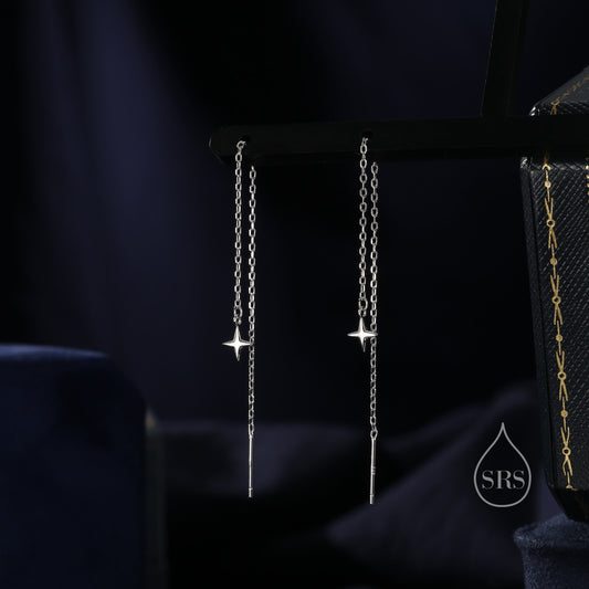 Four Point Star Threader Earrings in Sterling Silver, Silver or Gold, Star Ear Threaders