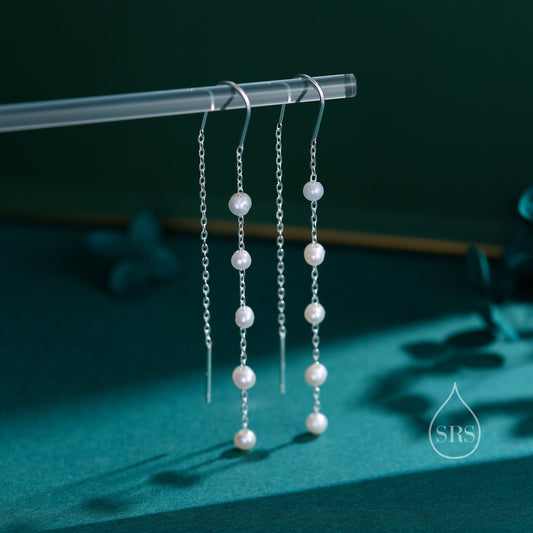Natural Freshwater Pearl Trio Threader Earrings in Sterling Silver, 9cm Ear Threaders, Long Threaders, Pearl Ear Threaders