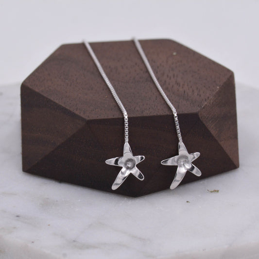 Sterling Silver Forget-me-not Flower Star Blossom Wire Ear Threader Drop Dangling Earrings - Nature Inspired Whimsical Design C63