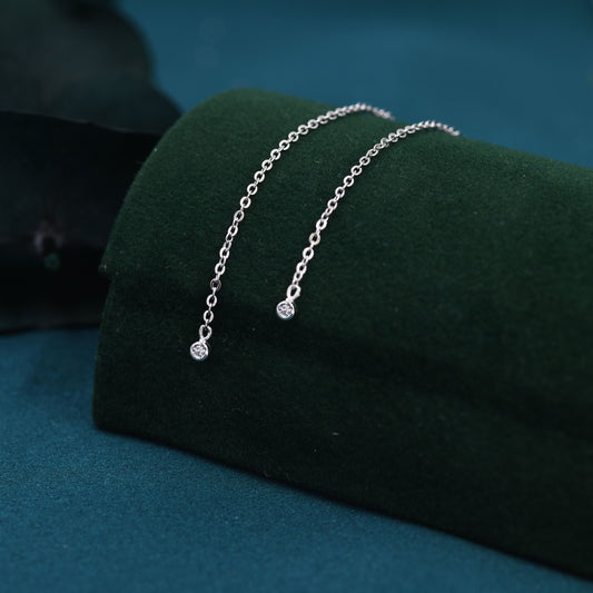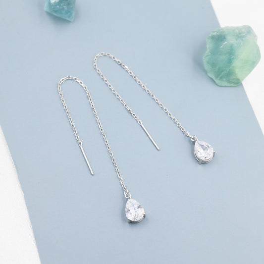 CZ Droplet Threader Earrings in Sterling Silver, Silver or Gold, Pear Cut CZ Long Ear Threaders, Sparkly CZ Threaders,