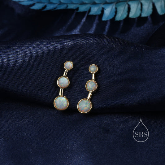 Sale! White Opal Trio Crawler Earrings in Sterling Silver, Fire Opal Ear Climbers, Silver or Gold, Lab Opal Earrings