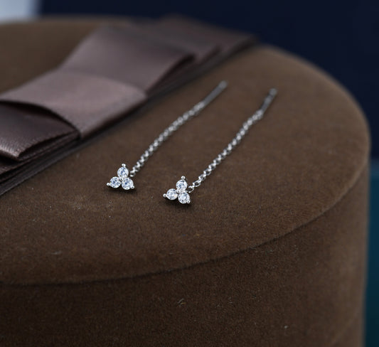 CZ Trio Flower Threader Earrings in Sterling Silver, Silver or Gold, Three Dot Crystal Ear Threaders, Flower CZ Earrings