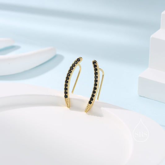Black Diamond CZ Crawler Earrings in Sterling Silver, Silver or Gold, Black Crystal Ear Crawlers, Ear Climbers