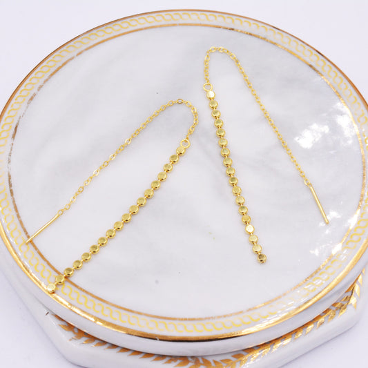 Minimalist Dotted Ear Threader in Sterling Silver, Front and Back Ear Jacket, Geometric, Silver or Gold, Stylish and Modern Earrings. Disk