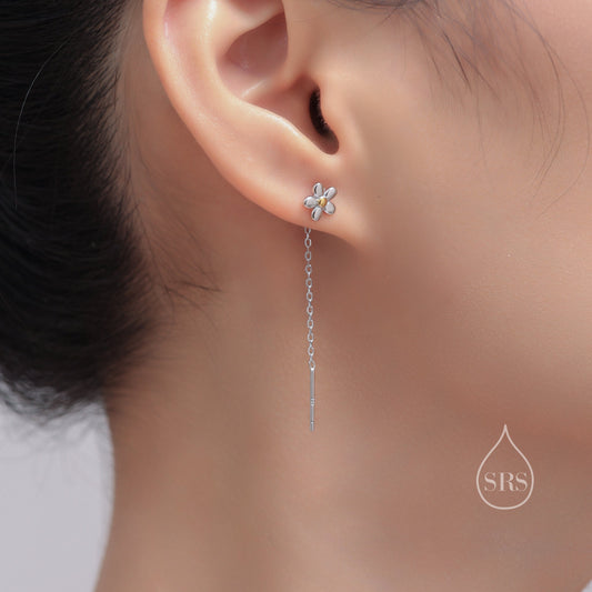 Forget Me Not Threader Earrings in Sterling Silver, Daisy Flower with Dangle Chain Earrings, Flower Chain Earrings