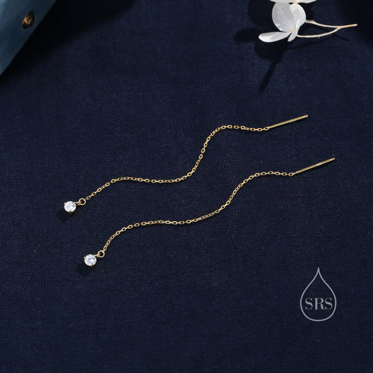 4mm CZ Threader Earrings in Sterling Silver, Silver or Gold or Rose Gold, Tiny Dot Crystal Ear Threaders, Prong Set CZ Earring