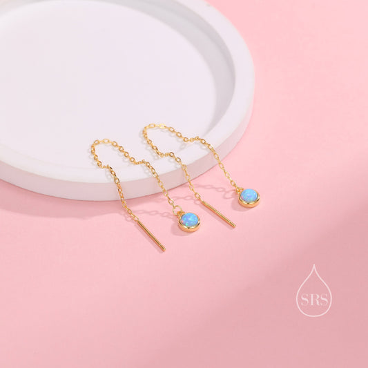 Blue Opal Dot Threader Earrings in Sterling Silver, Lab Opal Ear Threaders, Silver or Gold, Opal Threaders, Chain Earrings