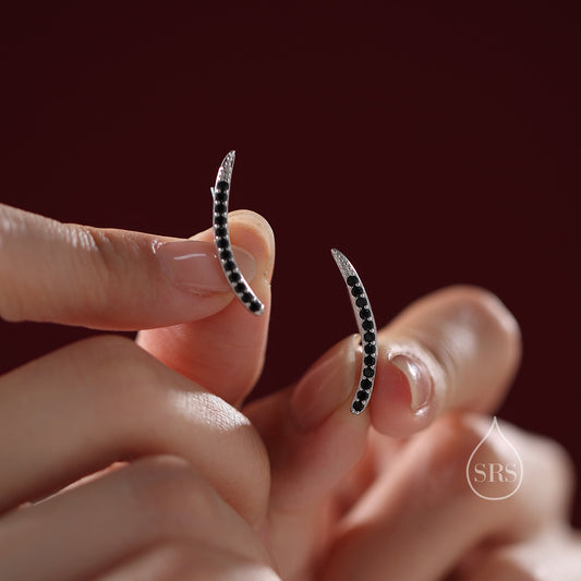 Black CZ Crawler Earrings in Sterling Silver, Silver or Gold, Dotted Ear Crawlers, Black Crystal Crawler, Minimalist Crawlers