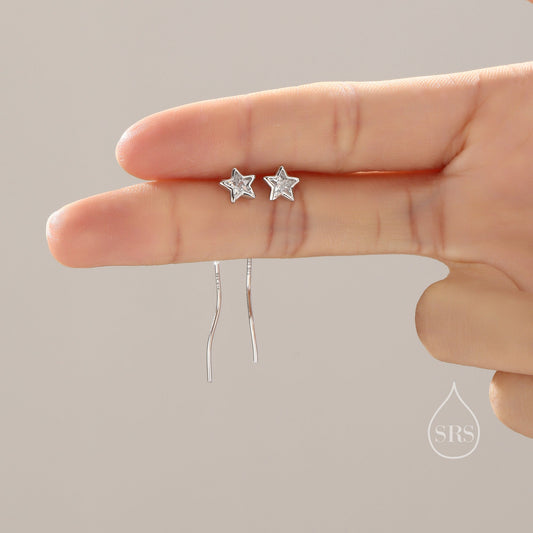 Star Bezel CZ Crystal Threader Earrings in Sterling Silver, Silver or Gold, Minimalist Star Cut Ear Threaders