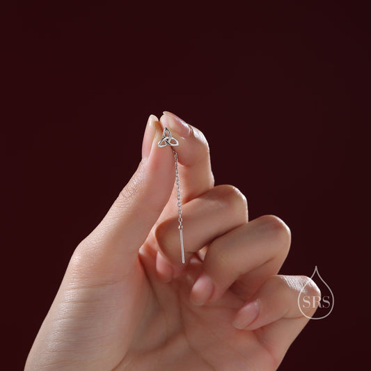 Celtic Trinity Knot Threader Earrings in Sterling Silver, Silver, Gold or Rose Gold, Celtic Trinity Knot Earrings