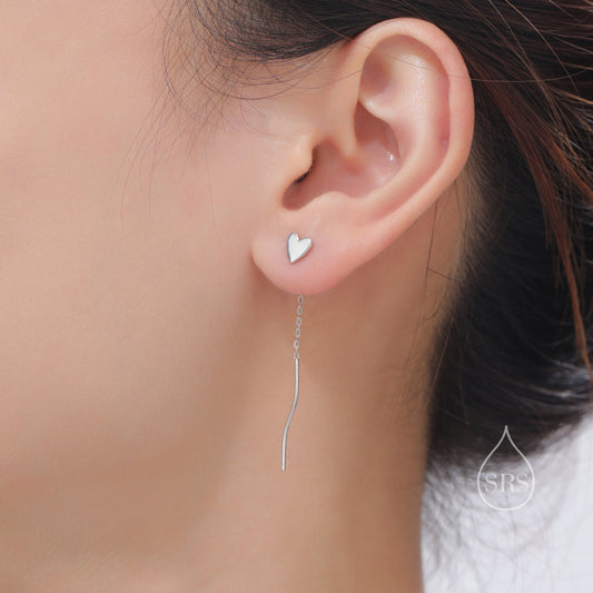 Delicate Heart Threader Earrings in Sterling Silver with Spiral Chains, Silver or Gold or Rose Gold, Heart Ear Threaders, Heart Threaders