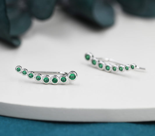 Emerald Green Pebble CZ Crawler Earrings in Sterling Silver, Silver or Gold, Dotted Ear Crawlers, Dots Crawler, Bobble Crawlers