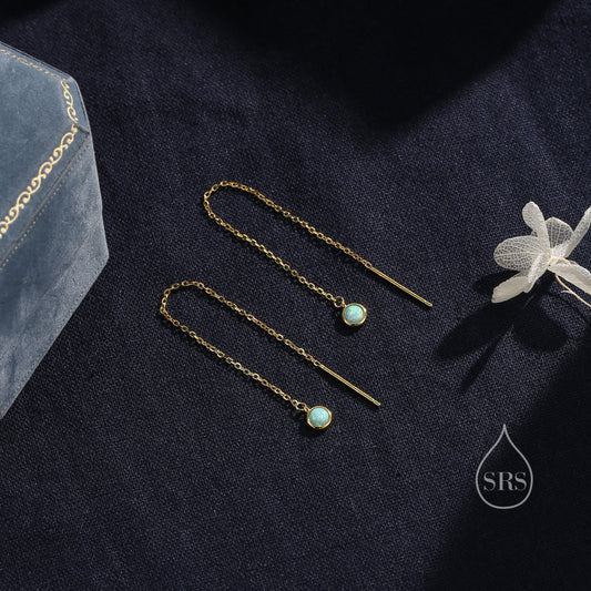 4mm Aqua Green Opal Dot Threader Earrings in Sterling Silver, Lab Opal Ear Threaders, Silver or Gold, Opal Threaders, Chain Earrings