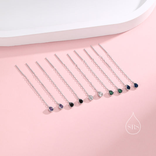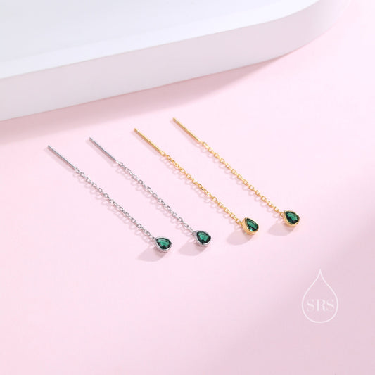 Tiny Emerald Green Droplet Bezel CZ Crystal Threader Earrings in Sterling Silver, Silver or Gold, Minimalist Pear Cut Ear Threaders