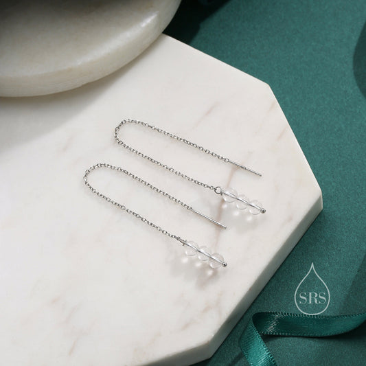 Genuine Clear Quartz Gemstone Ear Threaders in Sterling Silver, Three Beads Threader Earrings, Ear Jacket, Quartz Crystal Earrings