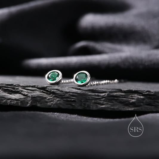 Emerald Green Bezel CZ Crystal Threader Earrings in Sterling Silver, Silver or Gold, Minimalist Crystal Ear Threaders, Threader Ear Jackets