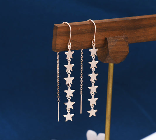 Star Cascade Threader Earrings in Sterling Silver, Star U Shape Ear Threaders, Silver, Gold or Rose Gold, Star Threaders, Long Threaders