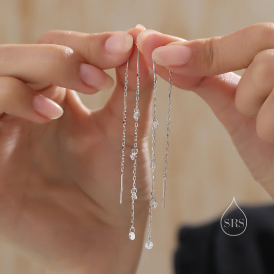 CZ Cascade Drop U Threader Earrings in Sterling Silver, Silver or Gold or Rose Gold, Geometric CZ Dangle Drop Earrings, CZ Long Drop Earring