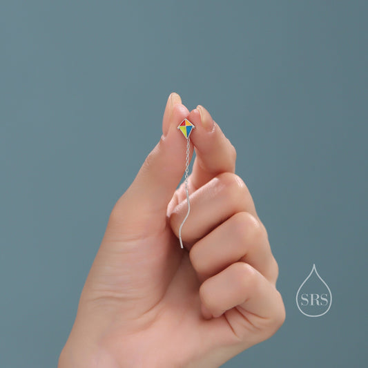 Sterling Silver Flying Kite Threader Earrings, Silver or Gold, Enamel Kite Dangle Drop Earrings, Cute and Quirky Design