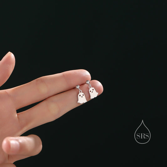 Sterling Silver Little Ghost Drop Stud Earrings, Silver or Gold or Rose Gold, Cute Ghost Dangle Stud Earrings, Ghost Dangle Earrings