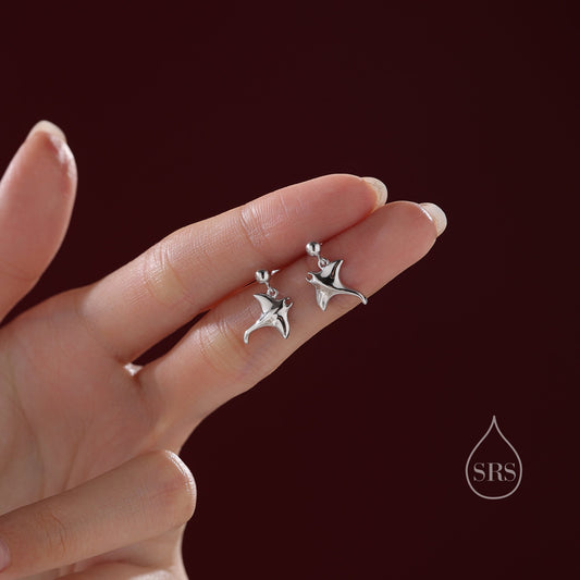 Sterling Silver Manta Ray Fish Drop Stud Earrings, Silver, or Gold or Rose Gold, Stingray Dangle Stud Earrings, Dainty Fish Dangle Earrings