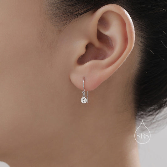 Tiny Hammered Disks Dangle Drop Earrings in Sterling Silver, Silver or Gold or Rose Gold, Minimalist Hammered Disk Earrings
