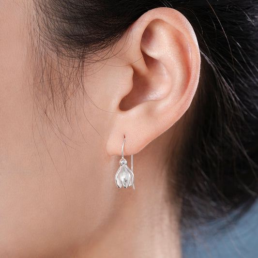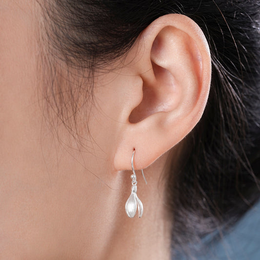 Delicate Snowdrop Flower Drop Hook Earrings in Sterling Silver, Silver and Gold, Nature Inspired Flower Earrings, January Birth Flower
