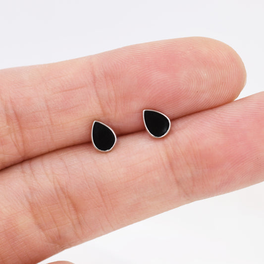 Black Droplet Dot Stud Earrings in Sterling Silver with Hand Painted Enamel, Black Stud, Enamel Droplet, Drop Shape