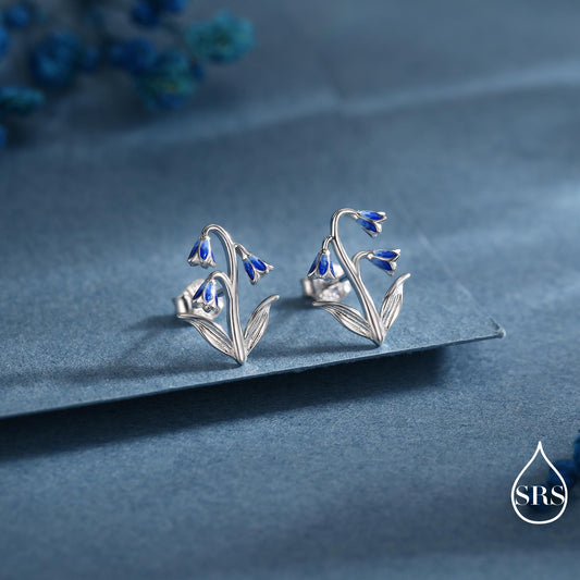 Sterling Silver Delicate Bluebell Flower Stud Earrings with Enamel, Dainty Bluebell Flower Earrings, Snowdrop Earrings, Spring Flowers