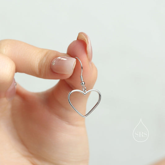 Heart Dangle Drop Hook Earrings in Sterling Silver, Silver or Gold or Rose Gold, Skinny Heart Earrings, Cut Out Heart Earrings, Hollow Heart