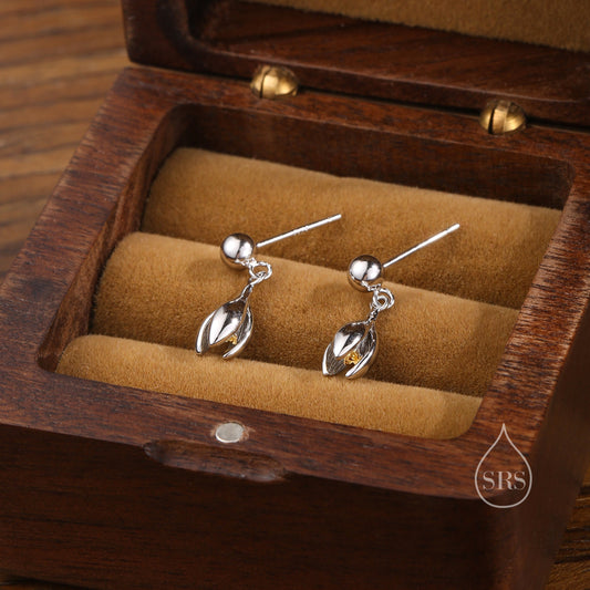 Snowdrop Flower Drop Dangle Earrings in Sterling Silver, Silver and Gold, Nature Inspired Flower Earrings, January Birth Flower, Botanical