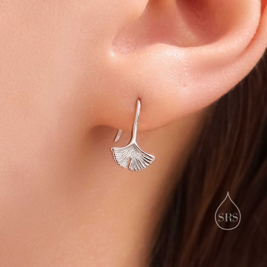 Tiny Ginkgo Leaf Drop Hook Earrings in Sterling Silver, Silver, Gold or Rose Gold, Small Leaf Earrings, Cute Leaf Earrings