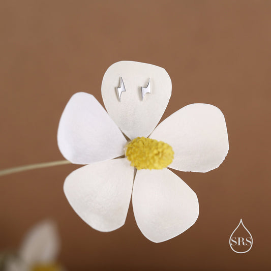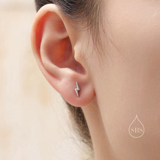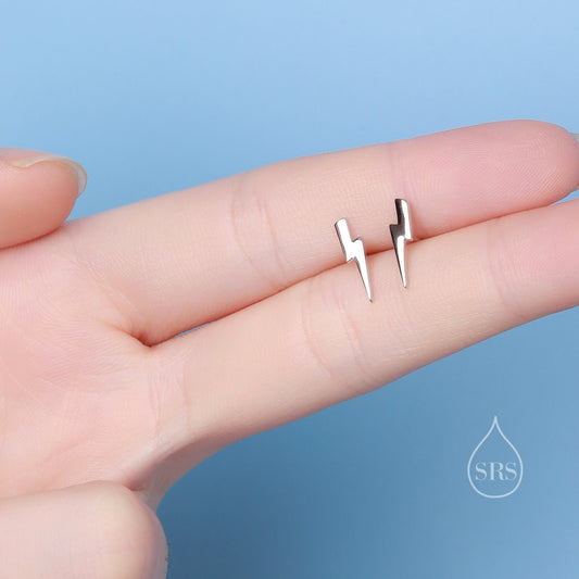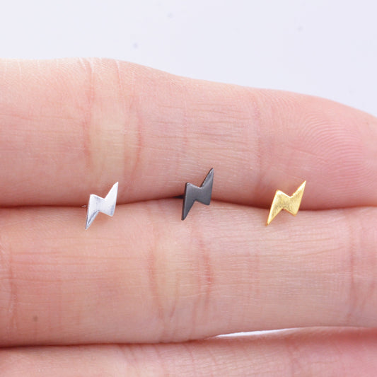 Extra Tiny Lightning Bolt Stud Earrings in Sterling Silver, Silver, Gold and Black, Barely Visible Earrings, Cute and Fun