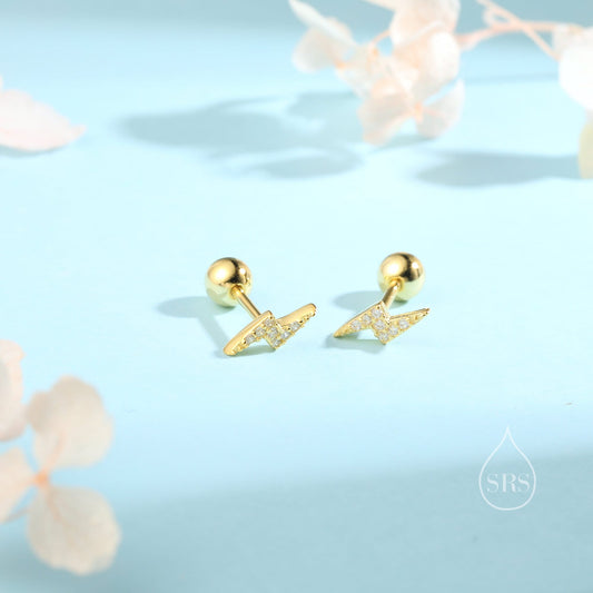 CZ Lightning Bolt Screw Back Earrings in Sterling Silver, Lightning Bolt Barbell Earrings, Silver, Gold and Rose Gold, Bolt Screwback