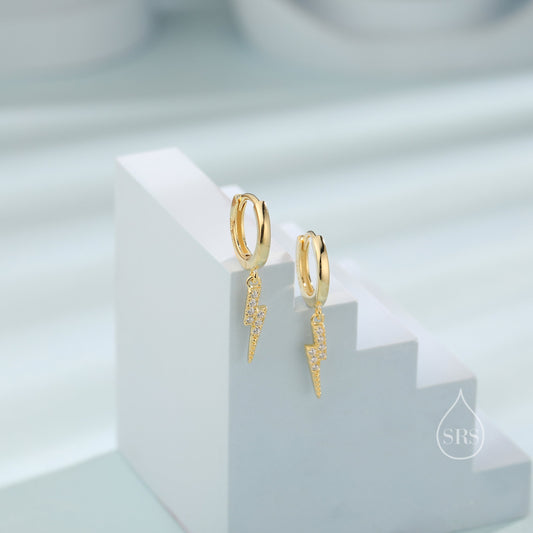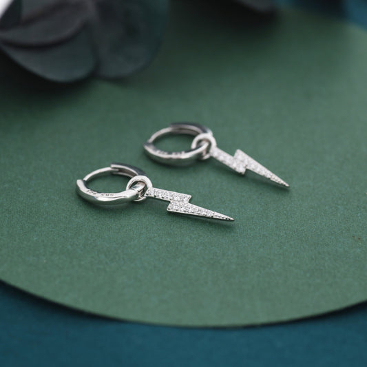 CZ Lightning Bolt Huggie Hoop Earrings in Sterling Silver, Silver or Gold, Lightening Bolt Hoop Earrings, Lightning Bolt