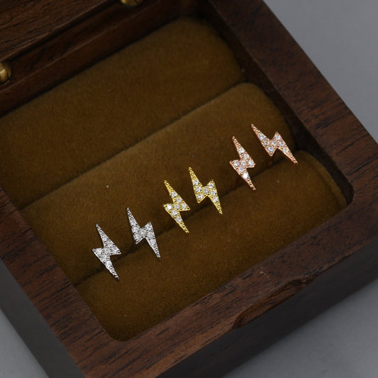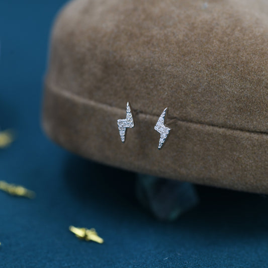 CZ Lightning Bolt Stud Earrings in Sterling Silver, Available in 2 Sizes, Tiny Lightning Bolt Earrings, Silver, Gold and Rose Gold