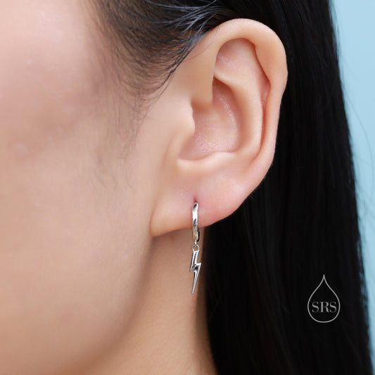 Lightning Bolt Charm Huggie Hoop Earrings in Sterling Silver with Detachable Charms, Silver, Gold or Rose Gold Lightening Earrings