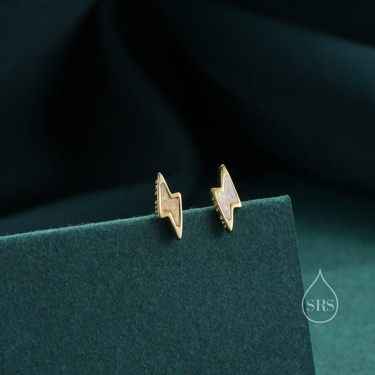 Extra Tiny Opal Lightning Bolt Stud Earrings in Sterling Silver, Silver or Gold, White Opal or Blue Opal, Lightning Bolt Earrings