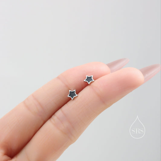 Tiny Black Enamel Star Stud Earrings in Sterling Silver, Silver or Gold, Black Star Earrings, Tiny and Delicate
